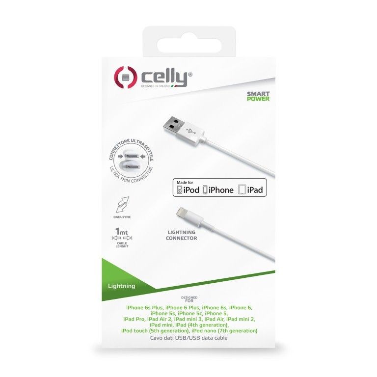 Sobib kasutamiseks: Apple iPhone 5 / 6 / 6S, iPod touch 5s generatsioon., iPod nano 7s generatsioon, iPad 4s generatsioon, iPad mini / mini Retina, iPad Air / Air 2